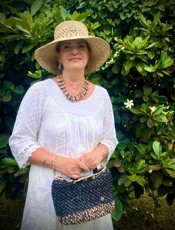 Fabriqué à partir d’un subtil mélange de coton et de Rafia, ce panier évoque avec finesse le charme du paeore, une fibre naturelle typique de cette région paradisiaque.
