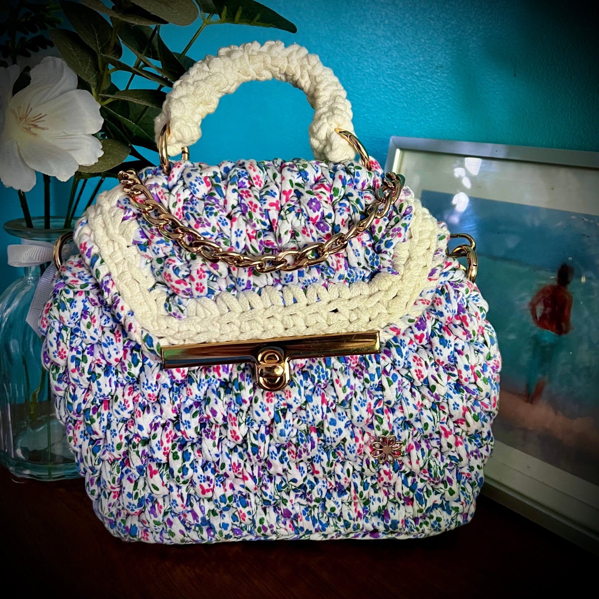 Offrez-vous une touche d’élégance audacieuse avec notre sac à un look fleuri.