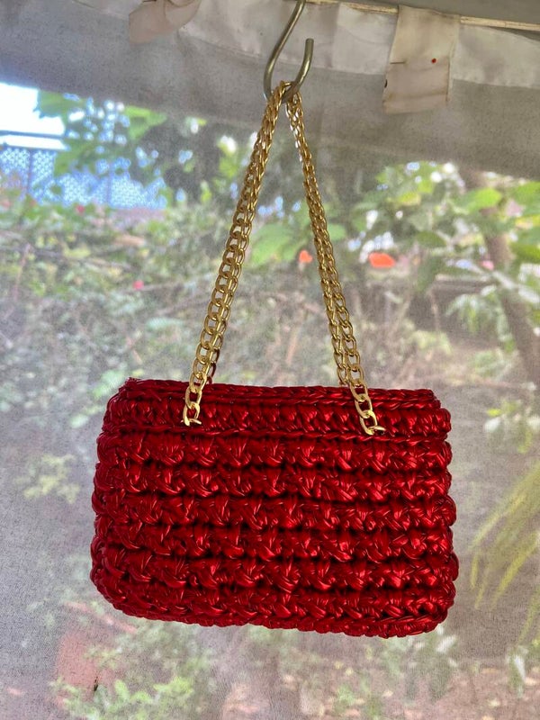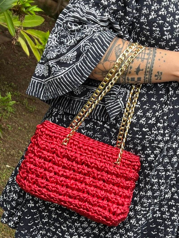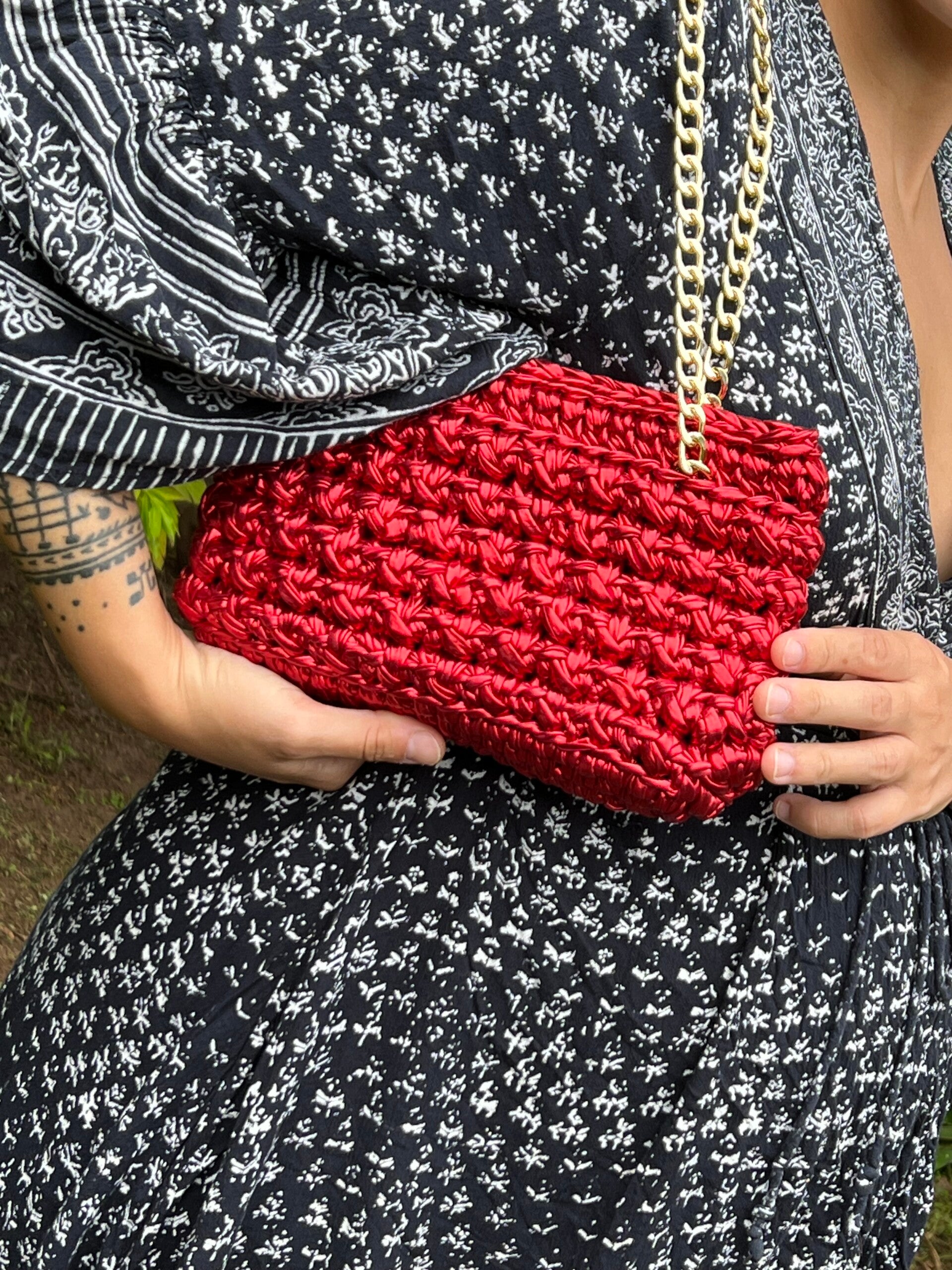 Magnifique sac de la collection FÊTES, confectionné dans un coton à l’effet metallic satiné et doté d’une finition en acier inoxydable doré.