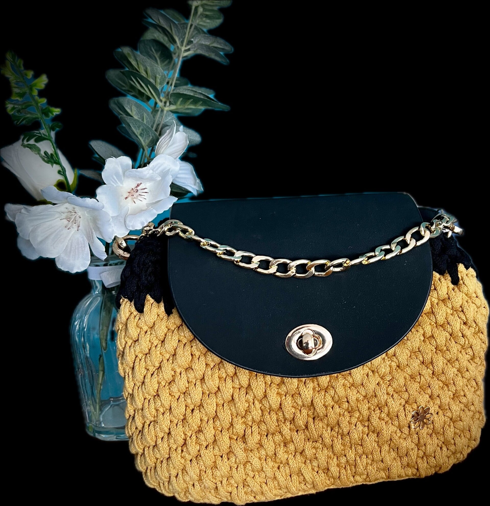 Découvrez notre sac crochet, une pièce unique qui allie élégamment le jersey de coton et le cuir, créant un mélange subtil qui attire tous les regards.