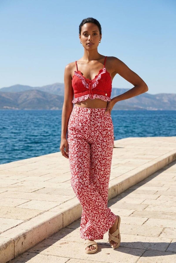 Top femme rouge et volants