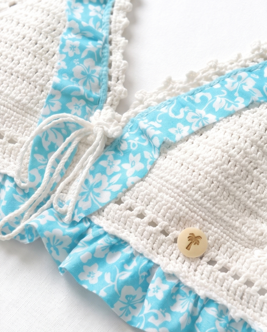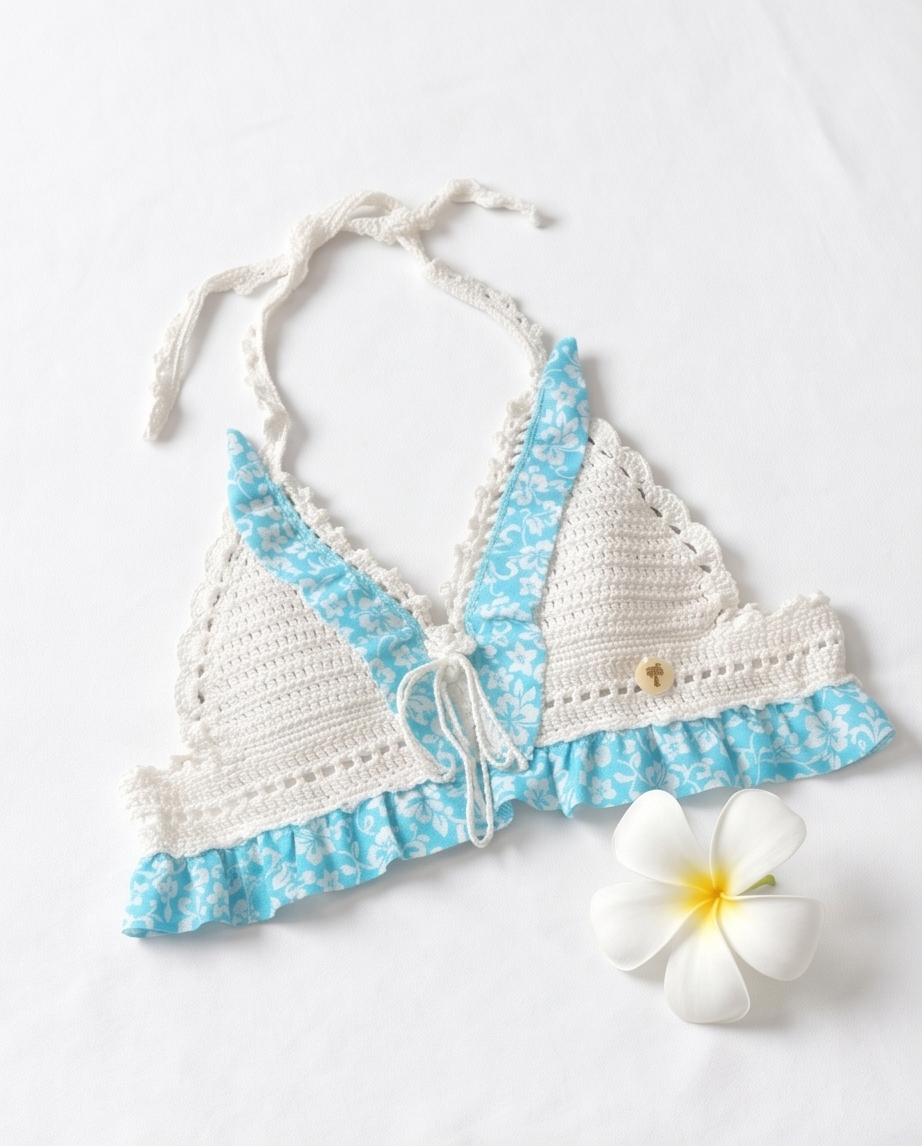 Volant en tissu paréo assorti,aux couleurs de Tahiti,pour un look local.